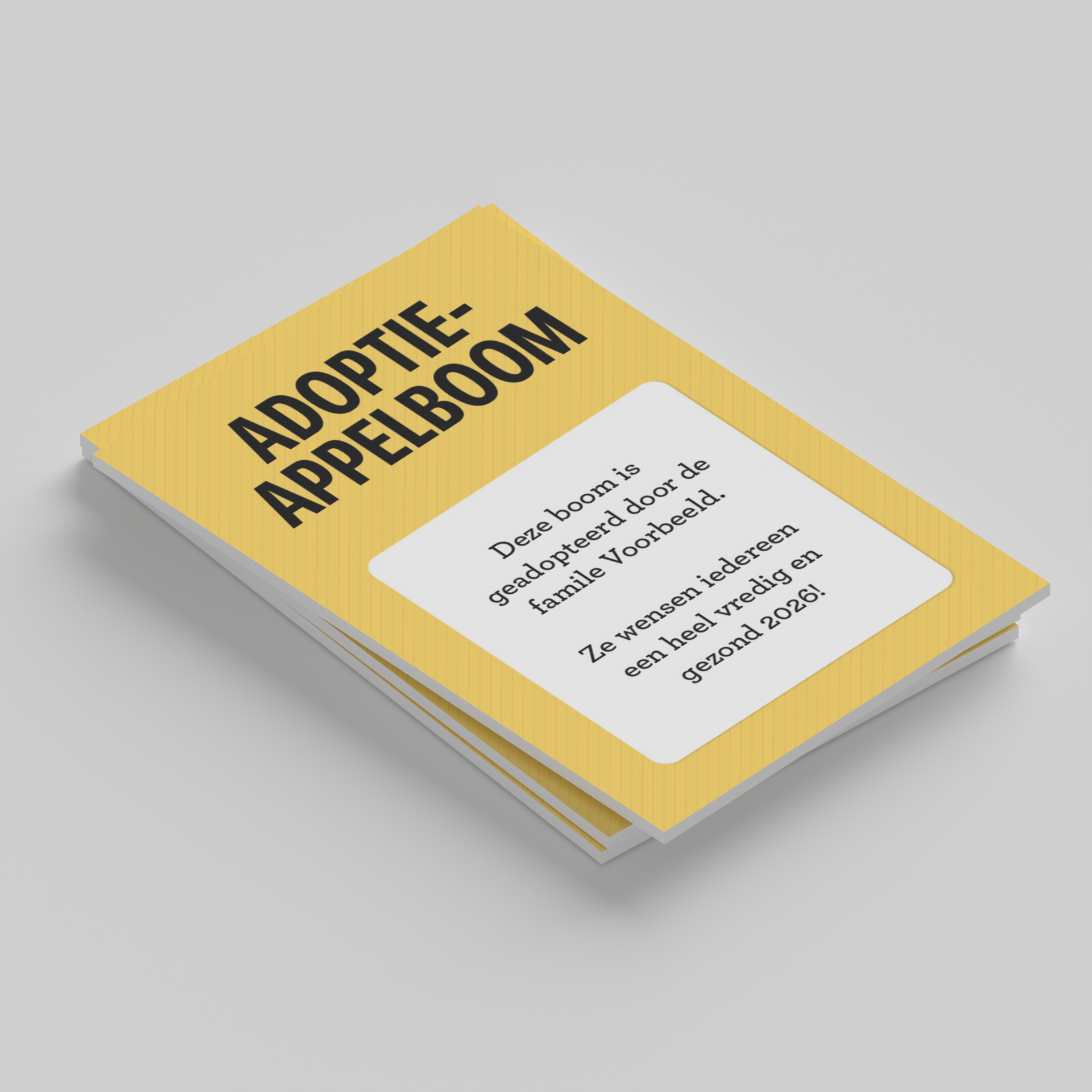 Heeft u de adoptieappelboom als cadeau voor iemand besteld? Dan kunt u zelf een leuke tekst kiezen, of dat overlaten aan degene voor wie u de boom heeft besteld.